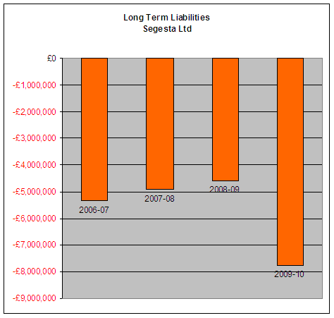 The bulk of the long term liabilities during 08/09 was comprised of the loan owed to Protoplan, and with that becoming a current liability in 09/10, and now paid of as of September 2010, the long term debt in the 09/10 accounts comes from a different source.