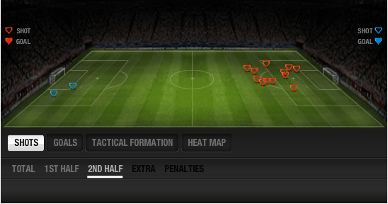 Blackpool had the better of the first half in terms of goals, however, Spurs looked very composed on the ball and worked themselves in to some good positions in the attacking third although their final ball often let them down. This may have been down to the change in Blackpool’s shape. Ian Holloway used Sylvestre as a more recognised anchor man and helped in stifling Spurs as they advanced on the Blackpool defence. This left Blackpool short of the more advanced option that Grandin offers, however, when DJ Campbell dropped deep to receive the ball he helped to link the midfield and attack. The first goal was brought about by a clumsy challenge from Sebastien Bassong resulting in a penalty. Whilst the second goal was a classic counter attack, Campbell received ball from deep, linked the play and eventually finished off the move. However, a combination of excellent defence from Blackpool and poor shooting ensured that Spurs’ best chances went without reward.