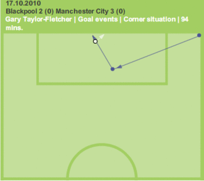 Blackpool struggled to play out from the back and distribution from the keeper proved to be just another pass to a Spurs player which only helped them to dominate in the passing battle. Richard Kingson was successful with only 16/48 passes. In the previous article the goal kicking had been highlighted as an issue as Blackpool’s pass completion had dropped recently. In this match Blackpool’s outfield players were much better on the ball and pass completion picked up to the 70% mark, however, it would’ve been higher and Blackpool more controlled if Kingson had been more efficient in his distribution.
