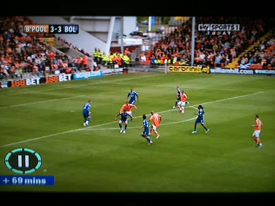 The first Manchester United goal was picked out in the preview, Berbatov pulling out to the wide right to latch on to a ball from the deep. Park Ji-Sung finishing superbly after being given a yard by Ian Evatt. Give a yard to a footballer at this level and you might as well give him ten. Blackpool responded, in truth Manchester United looked happy to let them have the ball and Blackpool were happy to have it, caressing it about the pitch, working it along their back line and in to midfield. However, as they stepped in to the final third the Manchester back line snapped at the Blackpool heels and refused to let them turn on goal.