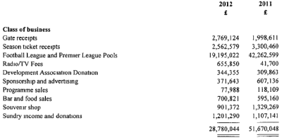 Using this headline figure, the record will show that the club’s salary costs fell by an incredible 52%, although in Blackpool’s case this doesn’t tell even half of the story. The 2011 costs, of course, included the £11m director salary paid to Owen Oyston – with director pay stripped out, the fall is a rather more modest 9.6%. Digging a little deeper it can be seen that of the £11.12m wage costs for 2012, the Director’s Report mentions that the football-related wages made up £10.6m. This leaves £520,000 for administrative and catering staff and at this point the accounts cause some confusion. Despite relegation to the Championship, the number of admin staff rose sharply from 27 to 47 – one has to wonder who these members of staff are.