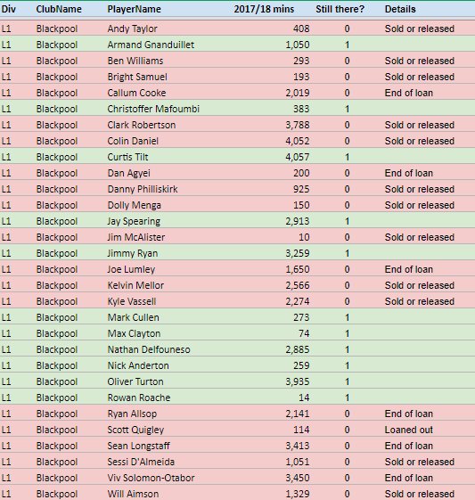 Between contracts expiring and loan players returning to their parent clubs, the Seasiders lost a huge number of key men from last season. Only three clubs – Bradford, Peterborough and Cheltenham – in the 92 lost more minutes from their squad over the summer break and the below graphic shows the scale of the exodus Bowyer had to deal with.