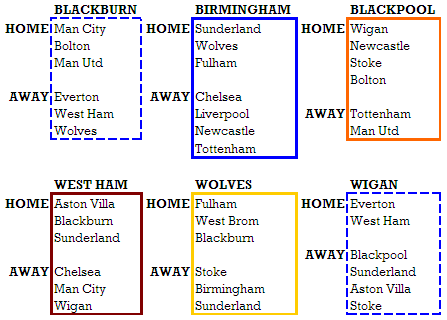 - Blackburn will occupy a relegation spot at some point – I’m not convinced Blackburn will be relegated, but I can see their season hinging on the games at West Ham and Wolves which fall towards the end of the season. They may have to win these games to lift themselves to safety.